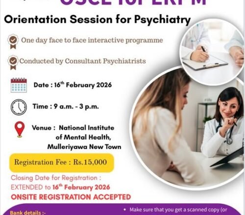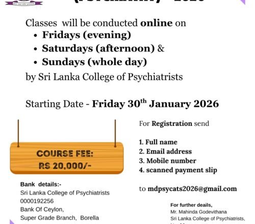 Selection Examination for MD (Psychiatry) – 2026The Sri Lanka College of Psychiatrists is now accepting registrations for the Selection Examination for MD (Psychiatry) – 2026. This program offers a flexible…